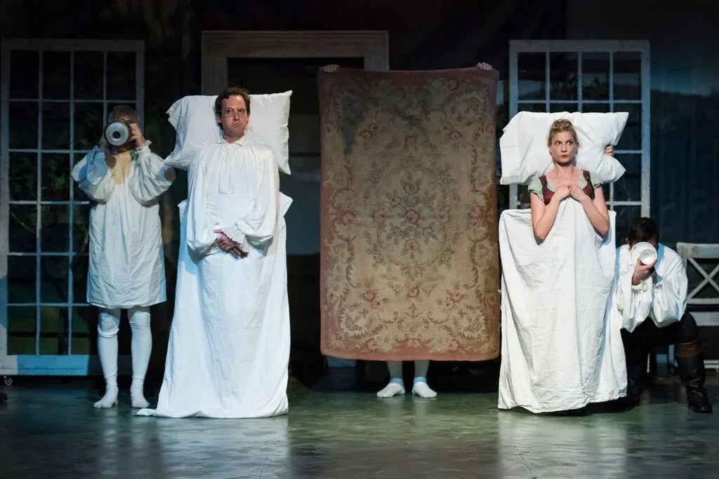 "Director Eric Tucker, who was Wall Street Journal Director of the Year in 2014, manages to have only four actors in the entire production, with Spencer Aste, John Russell and Stephan Wolfert playing multiple roles ranging from French kings to English clergy to military leaders—all with aplomb. In fact, these three New York actors are the highlight of the play as they move with ease from role to role." - Doni Wilson, Houstonia